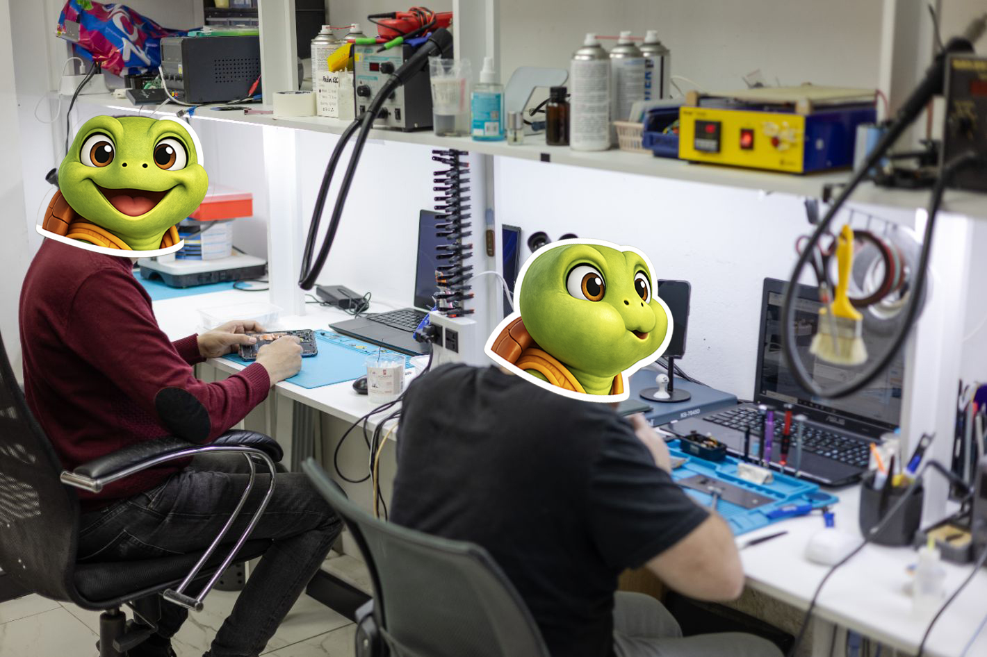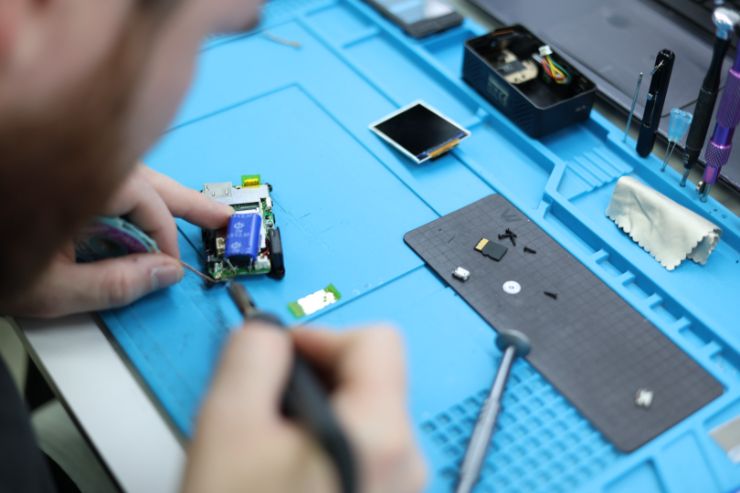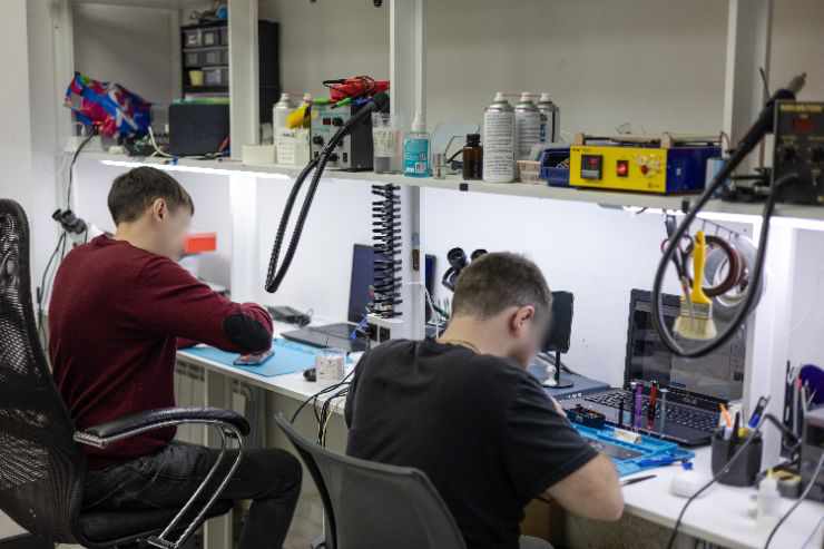 (детальнее, чтобы было видно, что «умеют чинить», и на макро, и на среднем плане: как мастер работает с телефоном, ноутбуком и т. д.)