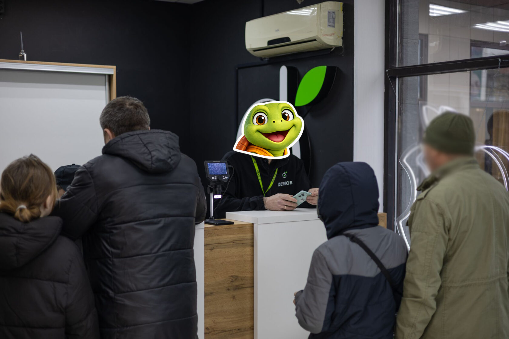 - Ресепшн / стойка приёмки (чисто, видно логотип).
