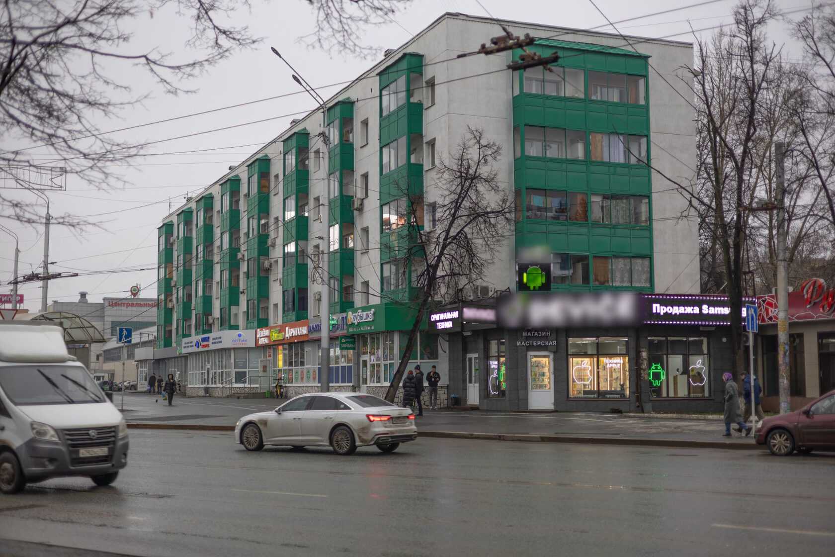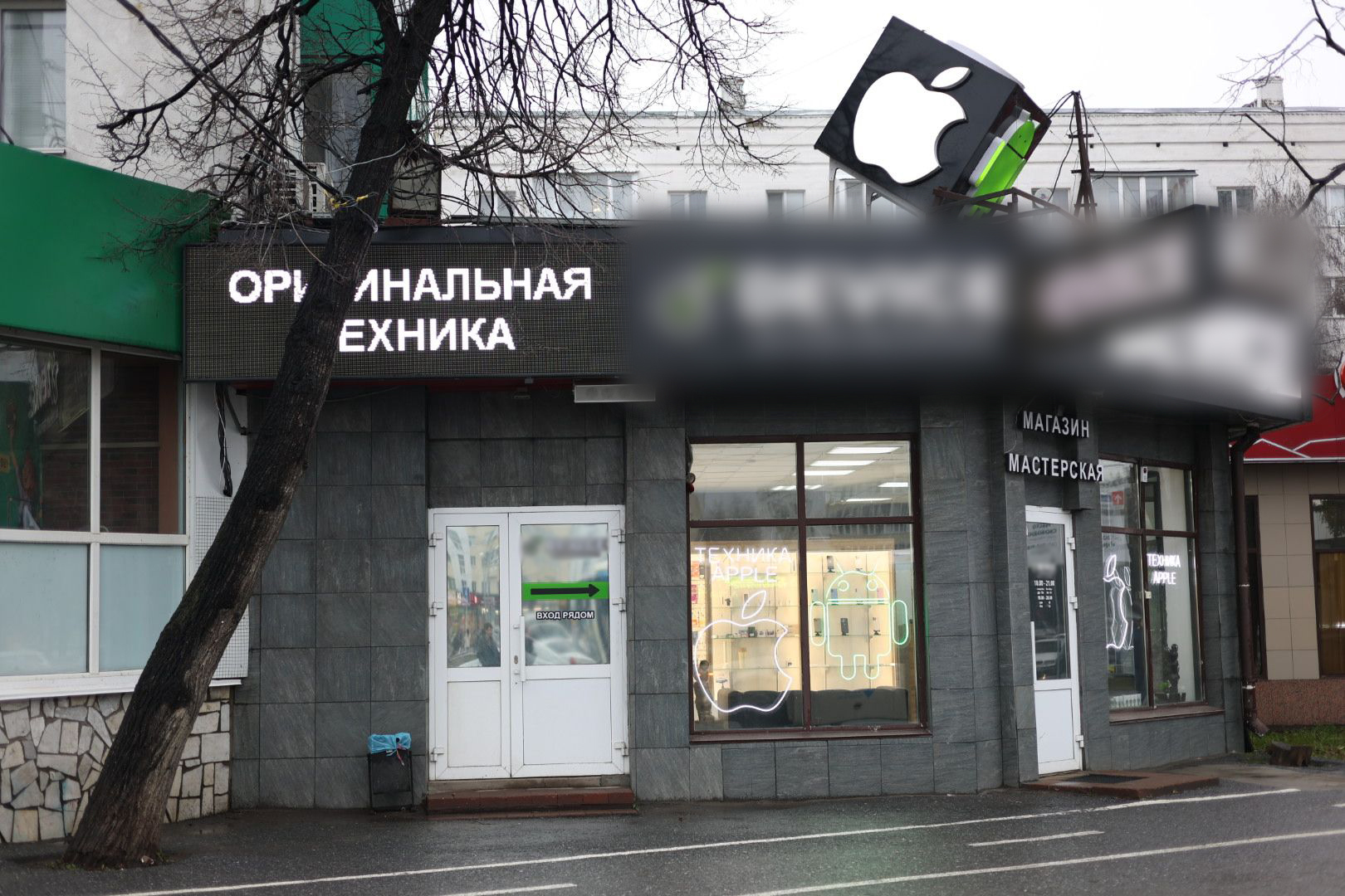 - Фасад здания со входом (видна вывеска и дверь; общий широкий план).