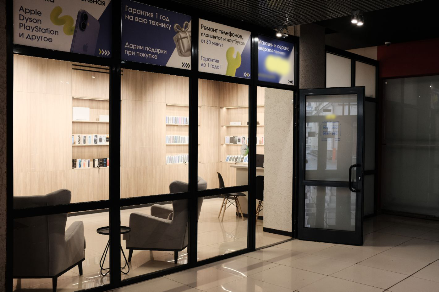 - Зона ожидания (стулья, вода/кофе, зарядки).