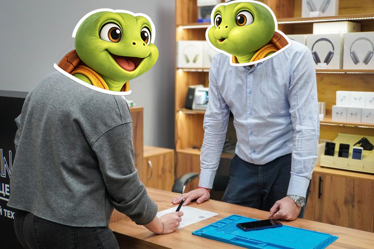 - Выдача отремонтированного устройства (улыбка клиента, лицо можно не показывать).