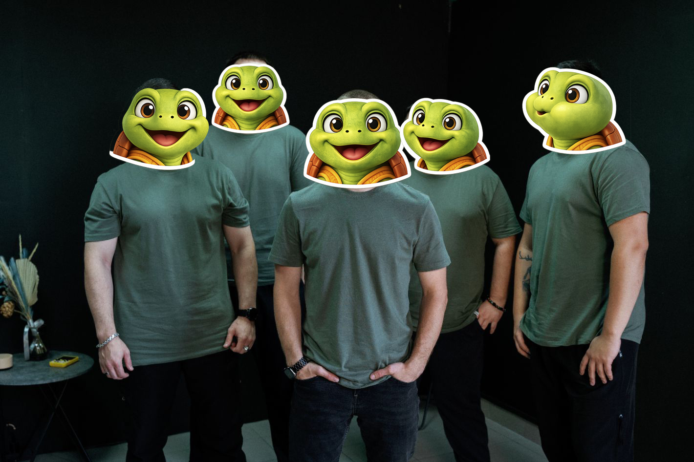 - Командное фото у логотипа.