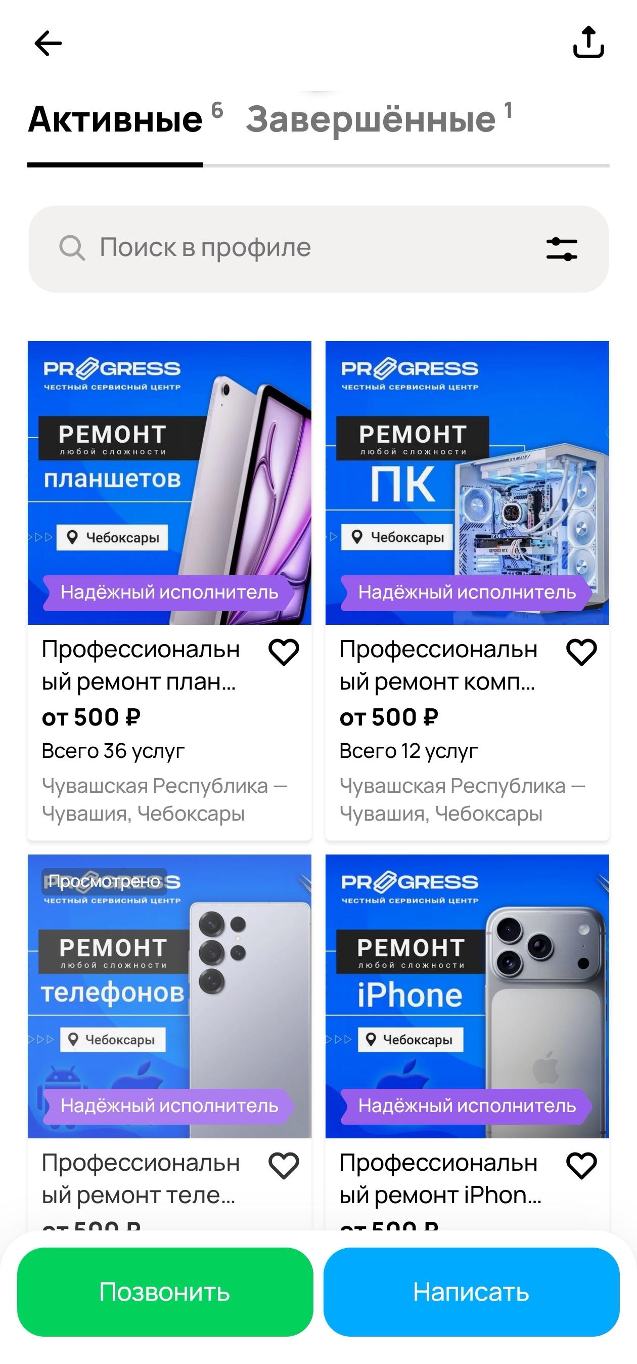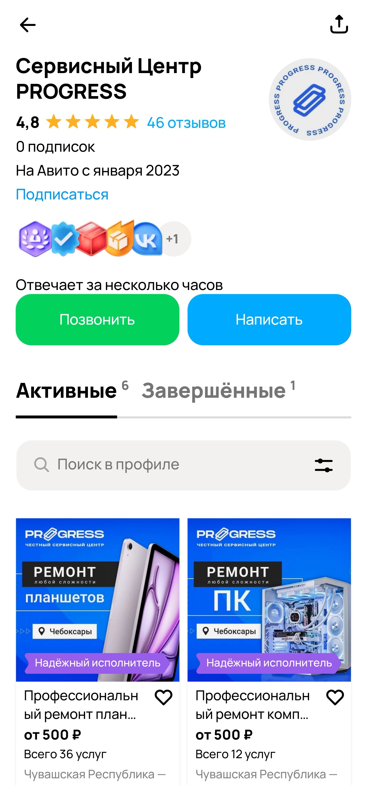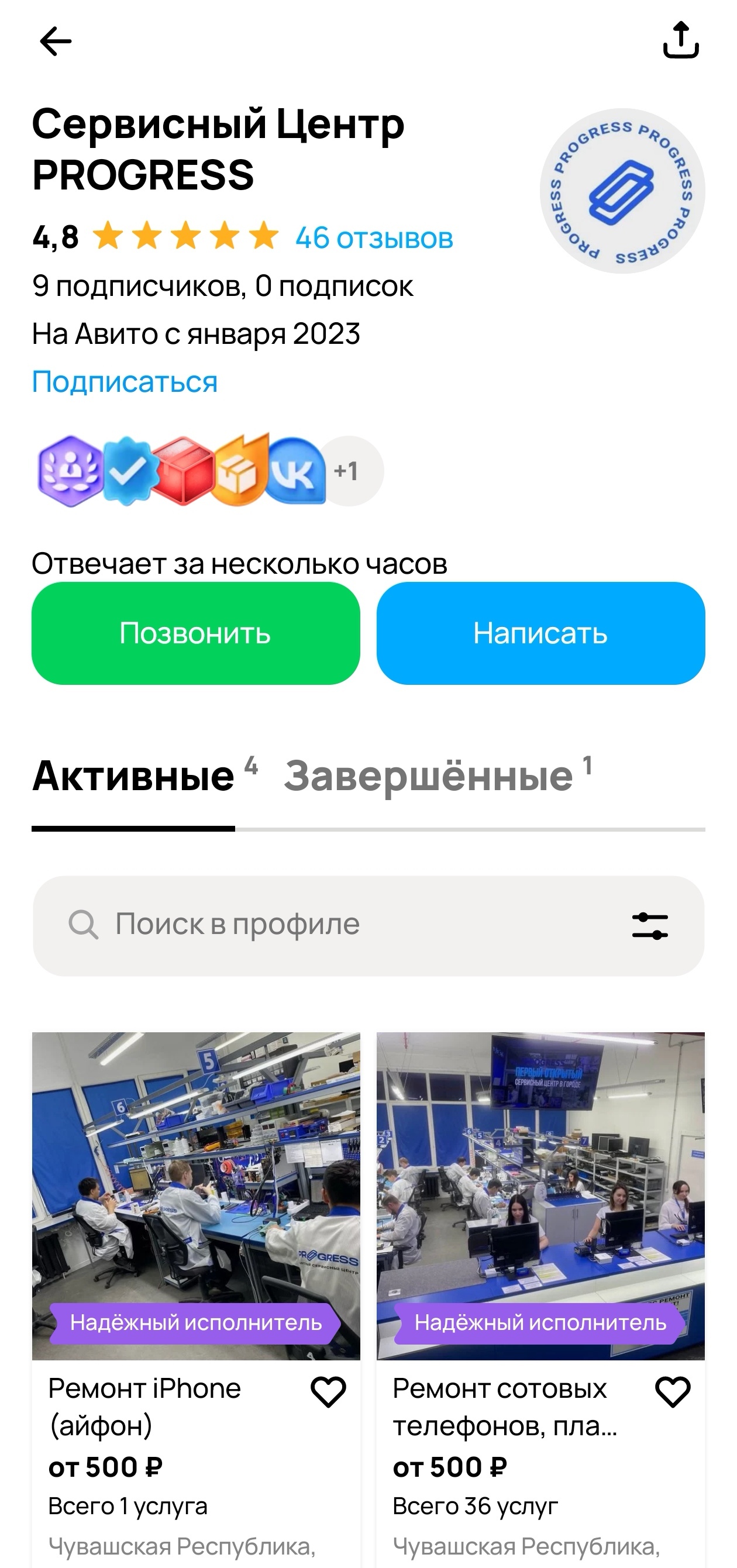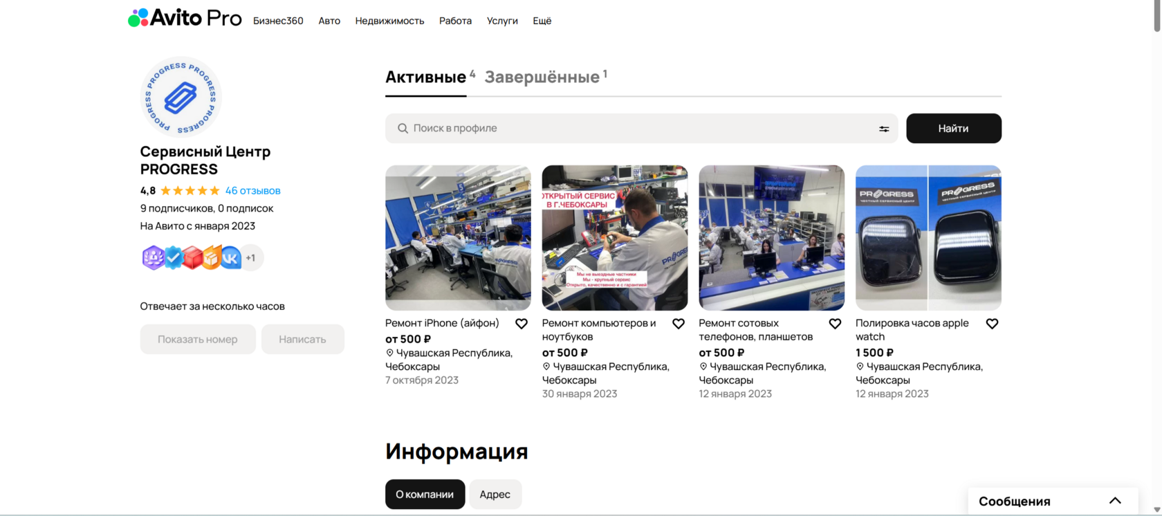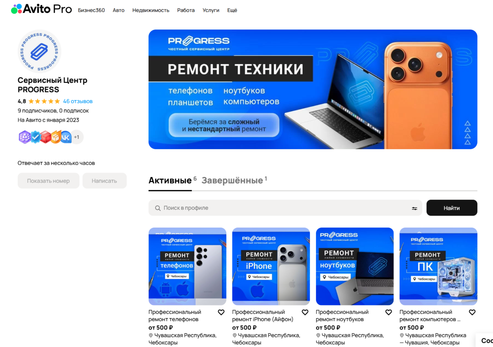 К нам обратился сервисный центр Прогресс по ремонту техники из Чебоксар. Основные направления работы — ремонт телефонов, iPhone и ноутбуков. В качестве источника заявок использовался Avito с подключённой расширенной подпиской.