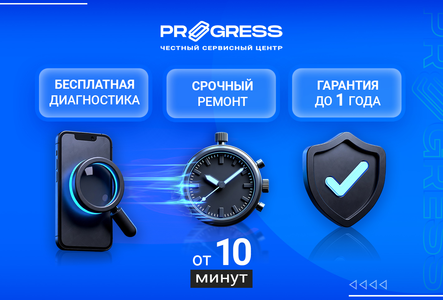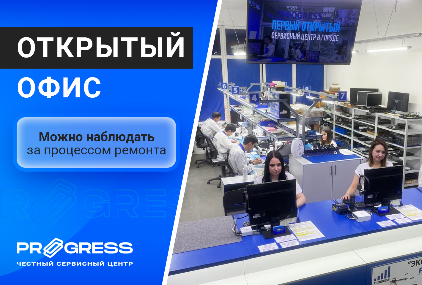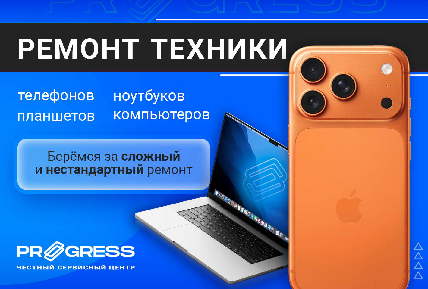 Тематики обложек: общий ремонт техники, баннер с УТП и баннер с акцентом на открытый сервисный центр.