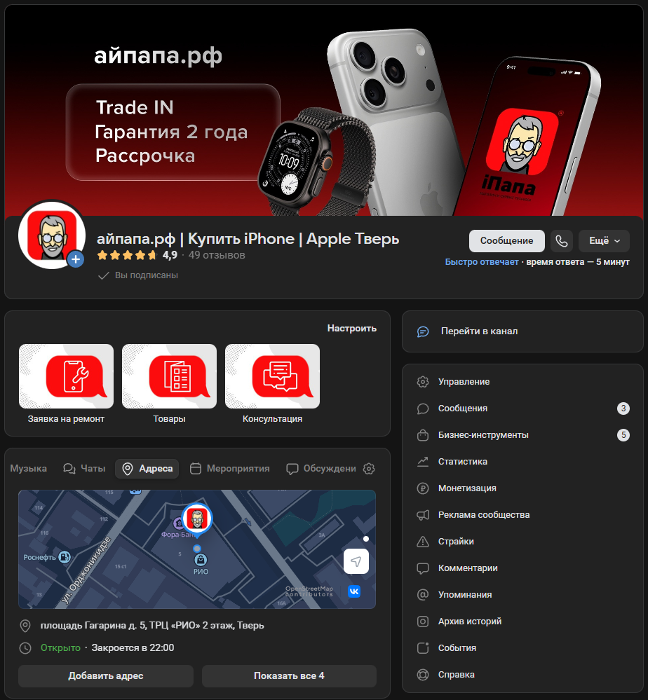 Клиент — магазин по продаже iPhone в Твери (проект «Айпапа»).